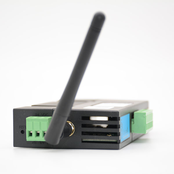 1、安裝在35mm的導(dǎo)軌上,LAN為三個(gè)RJ45接口,具備交換機(jī)功能,LAN連接PLC、觸摸屏和上位機(jī);X1和X2為RS485串行總線接口;WiFi外置高增益天線,可連接上位機(jī);RVNet外接24VDC電源供電;